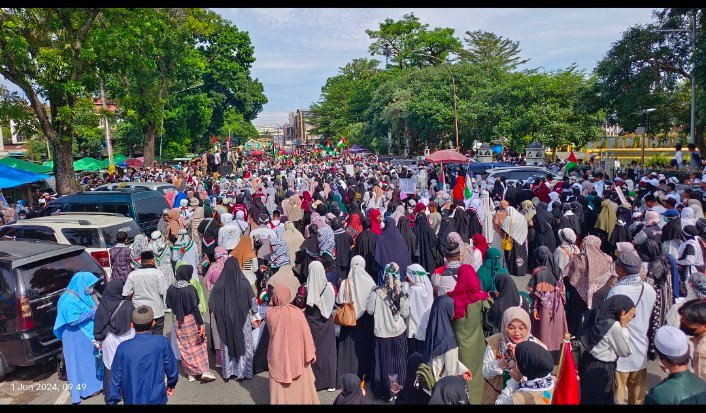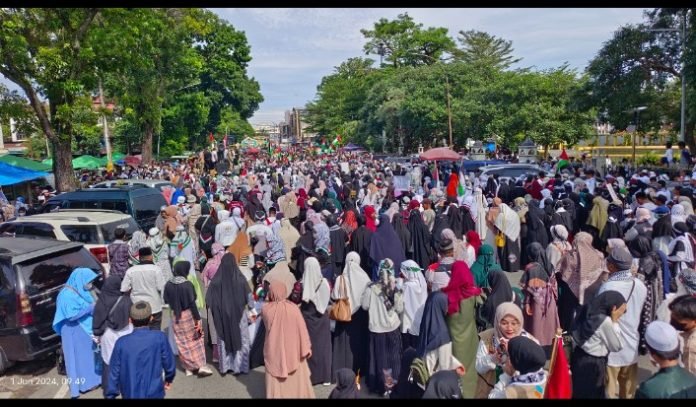 muisumut.or.id, Medan, MUI Sumut menyampaikan pesan pesan kemanusiaan pada Acara Aksi Damai Peduli Palestina yang dilaksanakan di depan Masjid Raya al Mashun Jalan Sisingamangaraja Medan pada Sabtu 1 Juni 2024. Kegiatan yang digagas oleh Forum Solidaritas Peduli Palestina Sumatera Utara Kembali dilaksanakan mengingat kondis Gaza Pelestina yang masih memprihatinkan, Genosida (pembataian) yang tak kunjung usai, bahkan sudah merambah ke Rafah.
