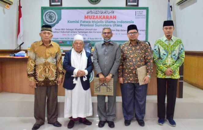 musiumut.or.id, Medan, Komisi Fatwa MUI Sumatera Utara kembali melaksanakan Muzakarah Ilmiah pada tahun 2023 yakni pada 29 Januari 2023. Materi yang diangkat pada kali ini adalah Peran MUI sebagai Khadimul Ummah (Pelayan Umat) dan Shadiqul Hukumah (Mitra Pemerintah) antara Tantangan dan Harapan. Materi ini disampaikan langsung oleh Wakil Ketua Umum MUI Sumatera Utara Dr. H. Arso, SH., M.Ag. Arso menyampaikan bahwa MUI sudah tertata rapi visi dan misi serta tugas pokok dan fungsinya di tengah-tengah umat.