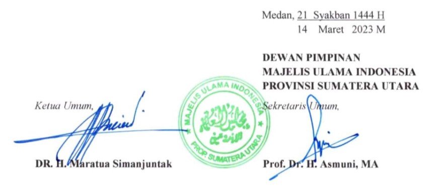 Demikian Hiınbauan MUI Provinsi Sumatera Utara ini diterbitkan, untuk dipedonani dan dilaksanakan sebagaimana mestinva. Semoga Allah senantiasa memberikan kita pertolongan dalam melaksanakan ibadah khususnya ibadah puasa Ramadhan