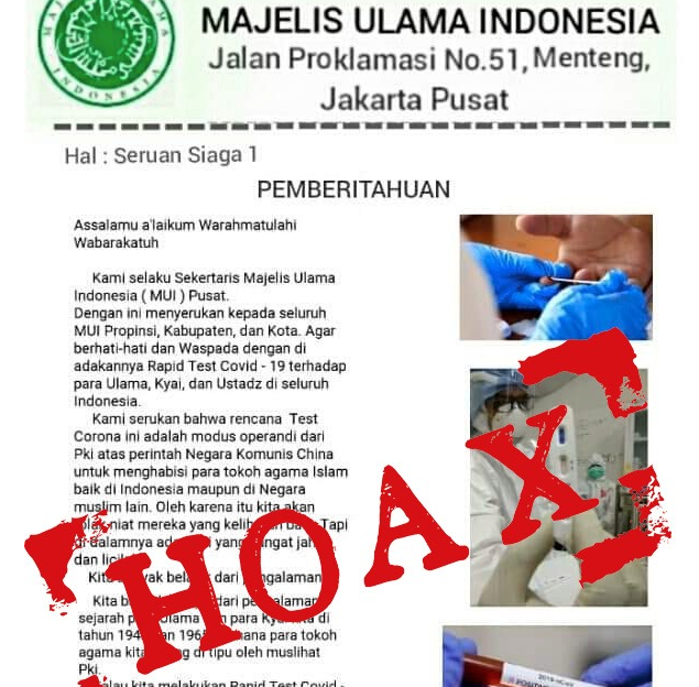 Komisi Informasi dan Komunikasi (Infokom) MUI melakukan tabayyun bahwa itu adalah Pesan Hoax atau Fake News. Surat tersebut tidak sesuai dengan Pedoman Penyelenggaraan Organisasi Majelis Ulama Indonesia (PO MUI) edisi Revisi 2018 sebagai berikut :