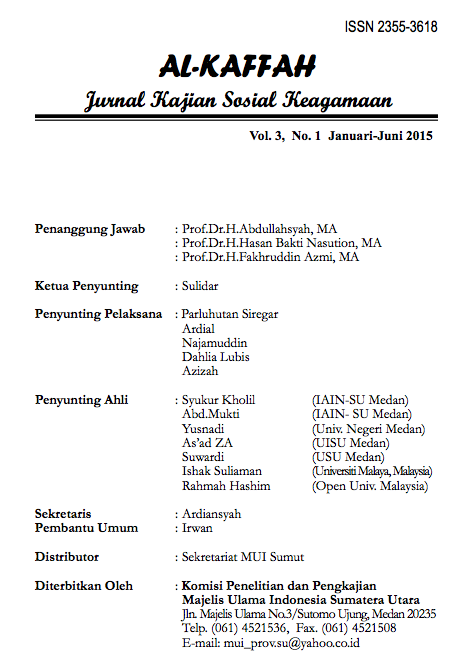 Dengan menyebut nama Allah Yang Maha Pengasih dan Maha Pengayang, serta berkat Rahmat-Nya pula kami tim redaksi bersyukur dapat menerbitkan Jurnal ini, kendatipun masih dalam bentuk sederhana, dan masih diperlukan pebaikan yang terus menerus, demi kualitas yang lebih ideal. Jurnal ini merupakan terbitan ketiga, maknanya tahun ketiga dari mula pertama diterbitkan. Jurnal ini bertujuan untuk menambah khazanah wawasan keislaman masyarakat Islam khususnya di Sumatera Utara, dan umumnya di Indonesia.