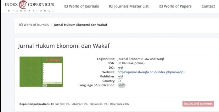Medan, muisumut.or.id, 28 Desember 2024 – Jurnal Al-Waqfu, yang dikelola oleh Pusat Pengembangan Wakaf Produktif (P2WP) MUI Sumut, resmi terindeks di Copernicus International pada 28 Desember 2024. Copernicus International merupakan indeksasi ilmiah internasional yang memberikan visibilitas global bagi jurnal-jurnal akademik dengan penekanan pada kualitas dan integritas.