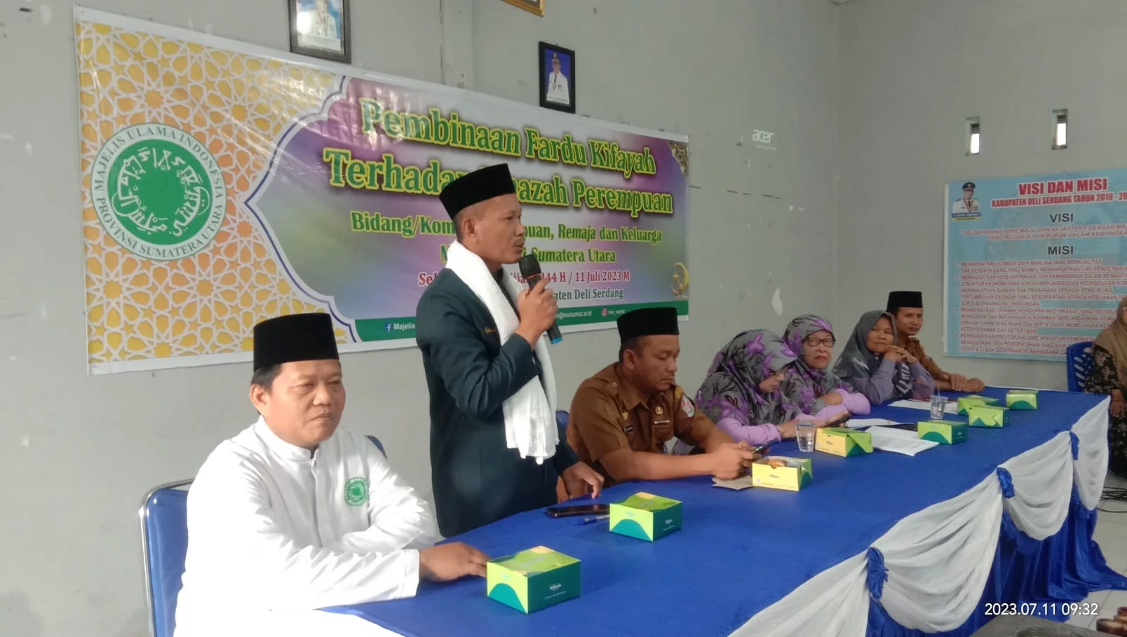 Dalam sambutannya, Hj. Rusmini yang mewakili Ketua Umum MUI Sumut menyampaikan bahwa saat ini terdapat banyak aliran-aliran sempalan yang tidak sesuai dengan syariat Islam. Oleh karena itu, pembinaan ini diadakan sebagai upaya untuk memperkuat pelaksanaan fardlu kifayah yang sesuai dengan ajaran Islam yang benar.