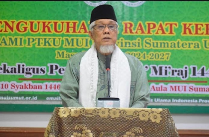 Medan, muisumut.or.id 9 Februari 2025 – Ketua Umum Majelis Ulama Indonesia (MUI) Provinsi Sumatera Utara, Dr. H. Maratua Simanjuntak, memberikan bimbingan dan arahan yang penuh motivasi dalam acara Rapat Kerja I KAMI PTKU MUI Sumut Tahun 2025. Beliau menegaskan bahwa alumni Program Takhasus Keagamaan Ulama (PTKU) adalah kader ulama muda yang memiliki peran strategis sebagai ahli agama, pengamal agama, dan pembela agama.