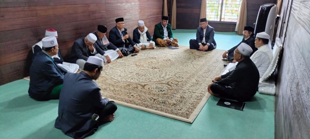 muisumut.or.id, Ketua Umum Majelis Ulama Indonesia (MUI) Sumatera Utara, Dr. H. Maratua Simanjuntak bersama sejumlah unsur Dewan Pimpinan bersilaturahmi kepada Tuan Guru Besilam Babussalam Langkat, Syekh Dr Zikmal Fuad MA dalam suasana penuh kehangatan di Persulukan Babussalam Padang Tualang, Langkat, Senin (30/10).