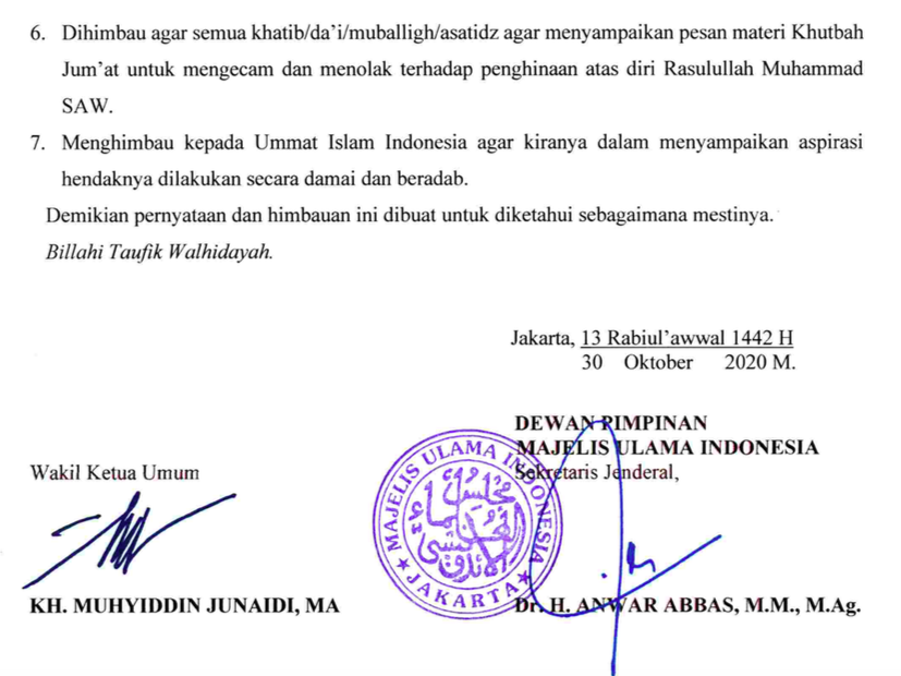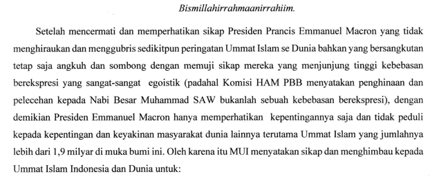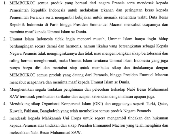 MAJELIS ULAMA INDONESIA (MUI) SERUKAN BOIKOT SEMUA PRODUK PRANCIS