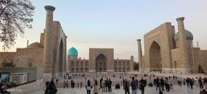 Setelah menempuh perjalanan panjang dari Bukhoro ke Samarkand sejauh sekitar 291 kilometer yang memakan waktu sekitar lima jam, rombongan MUI Sumatera Utara akhirnya tiba di kota bersejarah ini menjelang waktu magrib. Dalam perjalanan menuju Samarkand, rombongan juga sempat berziarah ke makam sufi besar, Abd al-Khaliq Gijduvani, sebuah pengalaman yang memberikan kedamaian tersendiri. Sesampainya di Samarkand, sebelum beristirahat di hotel, rombongan mengunjungi Registan Square, ikon kota ini yang terkenal dengan keindahan arsitektur dan nilai sejarah yang tinggi.