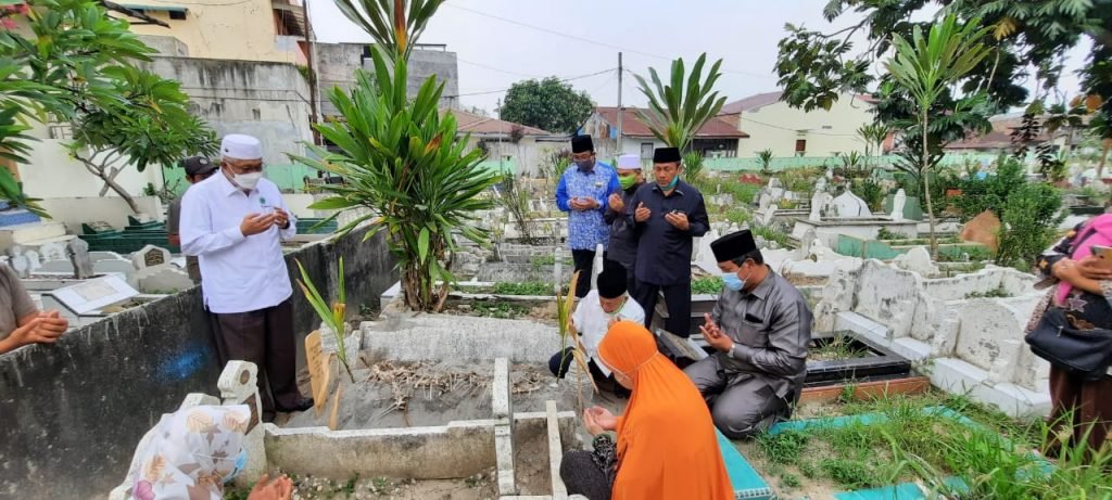muisumut.or.id, Medan Majelis Ulama Indonesia (MUI) Sumatera Utara mengambil moment Milad MUI ke 46 melaksanakan ziarah ke 4 makam Ketua MUI Sumatera Utara yang telah wafat. Untuk kegiatan ini dibagi menjadi dua kelompok, mengingat Ketua Umum pertama Syekh H. Dja’far Abdul Wahab Tanjung, makamnya berada di Padang Sidempuan Tap. Selatan sedangkan tiga lainya berada di kota Medan. Kelompok pertama dipimpin oleh Dr. H. Abdul Hamid Ritonga, MA, sedangkan untuk yang berada dikota Medan langsung dipimpin Ketua Umum MUI, Dr. H.Maratua Simanjuntak. Ikut dalam rombongan Sekretaris Umum, Prof. Dr. H. Asmuni, MA, Wakil Ketua Umum Dr H Arso, SH, Mag, Ketua Infokom, Dr. Akmaluddin Syahputra, M.Hum, Sekretaris Dr. Arifinsyah, M.Ag bersama beberapa orang sekretariat, Senin (26/7) di Pekuburan Gg Istirahat Jl.HM Yamin SH, demikian disampaikan Ketua umum MUI Sumut saat berziarah ke makam almarhum Ketua Umum Drs H.Abdul Jalil Muhammad.