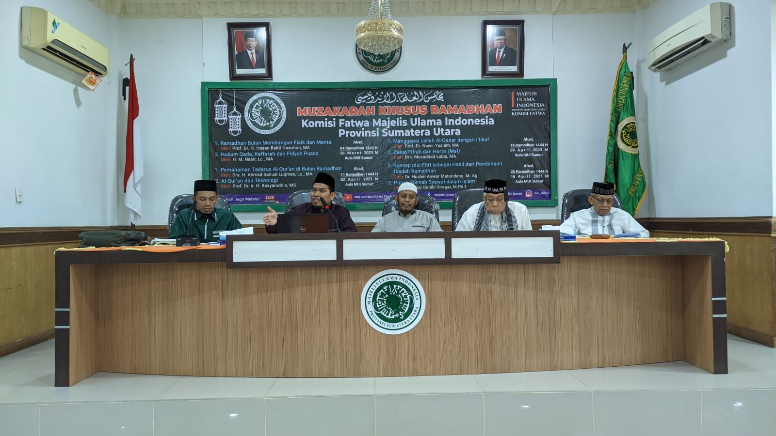 muisumut.or,id-Medan, Majelis Ulama Indonesia (MUI) Sumatera Utara mengadakan Muzakarah pada hari Ahad tanggal 16 April 2023 dengan menghadirkan Dr. Iqbal Habibi Siregar, M.Pd.I selaku Sekretaris Komisi Fatwa MUI Sumatera Utara sebagai pemateri utama. Salah satu topik yang diangkat dalam muzakarah kali ini adalah mengenai pengertian dan keistimewaan puasa sunnah, khususnya puasa Syawal.
