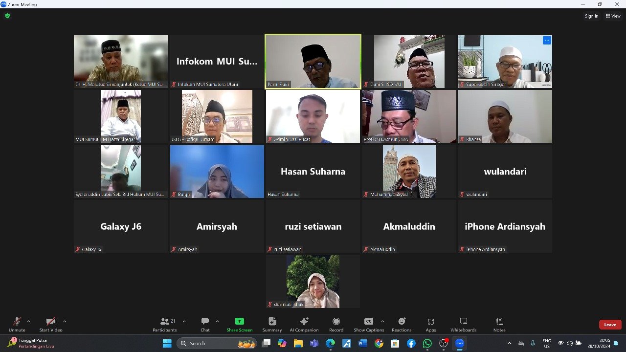 Medan, muisumut.or.id, – Majelis Ulama Indonesia (MUI) Sumatera Utara terus berupaya meningkatkan kualitas pelayanannya dengan tekad untuk memperoleh sertifikasi ISO 9001:2015. Sebagai langkah awal, MUI Pusat dan MUI Sumut mengadakan Rapat Koordinasi daring pada Senin, 28 Oktober 2024, pukul 20.00-21.00 WIB. Rapat ini turut dihadiri oleh Korwil MUI Pusat untuk Sumut, Ketua BPPO MUI K.H. Sholahuddin Al Ayyub, serta jajaran pimpinan MUI Sumut yang meliputi Ketua Umum Dr. H. Maratua Simanjuntak, Sekretaris Umum Prof. Dr. Asmuni, dan beberapa pimpinan bidang lainnya. Tim ISO MUI Pusat juga hadir sebagai pendamping dalam rapat ini.