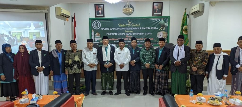 muisumut.or.id-Medan, Pada Rabu, 12 Syawal 1444 H/03 Mei 2023 M, Majelis Ulama Indonesia (MUI) Provinsi Sumatera Utara (SU) menggelar acara Halal Bi Halal dengan tema “Pemantapan Idul Fitri dan Ukhuwah Islamiyah” di Aula MUI SU, mulai pukul 09.00 hingga selesai WIB. Acara ini dihadiri oleh berbagai ormas Islam, tokoh agama, serta pejabat pemerintah setempat.