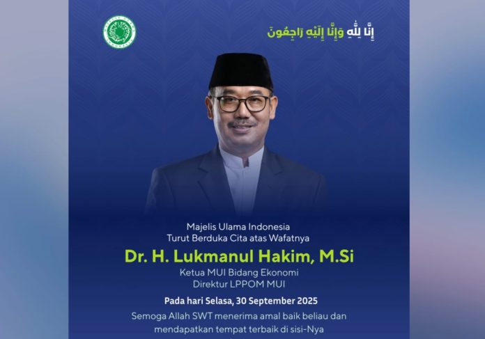 Innalillahi wa inna ilaihi raji’un, telah berpulang ke rahmatullah Dr. H. Lukmanul Hakim, M.Si, Ketua MUI Bidang Ekonomi MUI Pusat dan Direktur LPPOM MUI, pada Selasa (30/9/2025). Almarhum juga dikenal sebagai Ketua Lembaga Wakaf Majelis Ulama Indonesia (LW-MUI), yang selama hidupnya mendedikasikan diri untuk membangun ekonomi syariah dan mengembangkan gerakan wakaf nasional.