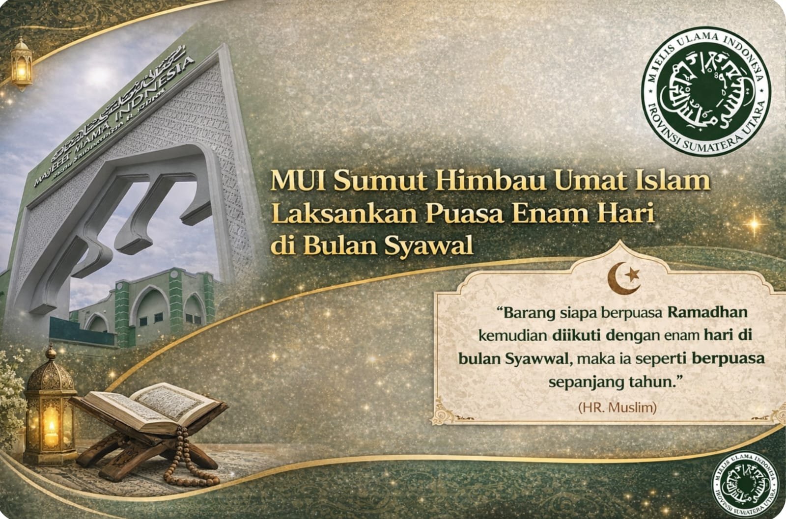 Medan, muisumut.or.id., 29 Maret 2026 – Majelis Ulama Indonesia (MUI) Provinsi Sumatera Utara menghimbau kepada umat Islam agar melaksanakan puasa sunnah enam hari di bulan Syawal sebagai bagian dari upaya melanjutkan semangat ibadah setelah bulan suci Ramadhan.
