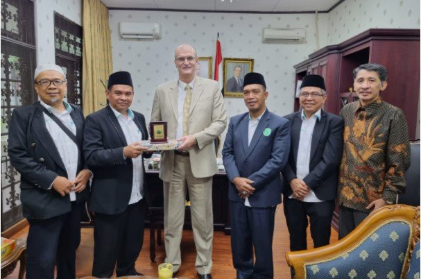 Mewakili MUI-SU, KH Akhyar yang juga merupakan Ketua Umum Ikatan Alumni al-Syam Indonesia Provinsi Sumatera Utara dan Koordinator Al-Syam Pulau Sumatera, dan didampingi Ketua Komis HLNKI MUI-SU H Abdi Syahrial Harahap Lc MA dan Sekretaris Komisi DR H Muhammad Irsan Nasution, SE.Ak. CA. M.Ak CIPSAS, melakukan sambungan seluler kepada Duta Besar Republik Arab Suriah di Jakarta Mr. Abdulmonem ‘Annan.