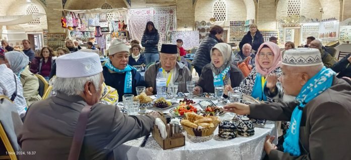 Bukhoro, Uzbekistan, muisumut.or.id., – Jumat, 1 November 2024, Rombongan Majelis Ulama Indonesia (MUI) Sumatera Utara menghabiskan malam penuh kenangan di kawasan bersejarah Lyabi Hauz, jantung kota tua Bukhara, Uzbekistan. Dalam kesempatan makan malam ini, mereka tidak hanya menikmati sajian kuliner khas, tetapi juga merasakan keunikan budaya Uzbekistan yang disajikan melalui pertunjukan tari, nyanyian, dan fashion show tradisional di Nodir Devonbegi Madrasah.