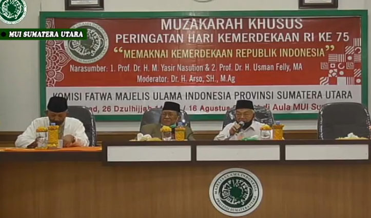 Dalam hal ini Komisi Fatwa Majelis Ulama Indonesia Provinsi Sumatera Utara mengadakan muzakarah khusus peringatan hari kemerdekaan RI yang ke 75 dengan tema “Memaknai kemerdekaan Republik Indonesia” pada Ahad, 26 Dzulhijjah 1441 H / 16 Agustus 2020 M di Aula MUI Sumut. Hadir sebagai pembicara Prof. De. H. Usman Felly, MA dan Prof. Dr. Hasyim Purba, M.Hum