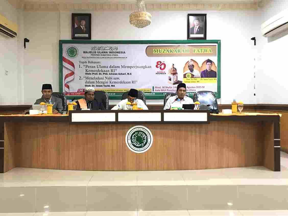 Medan muisumut.or.id– Ahad 24 Agustus 2025 Muzakarah rutin bulanan Majelis Ulama Indonesia (MUI) Sumatera Utara kembali digelar pada Sabtu, 24 Agustus 2025 di Kantor MUI Sumatera Utara, Jalan Majelis Ulama No. 3, Medan. Dalam kesempatan tersebut, Anggota Komisi Fatwa MUI Sumut, Dr. Imam Yazid, M.A., tampil sebagai pemateri dengan topik “Teladan Nabi Muhammad SAW: Kunci Mengisi Kemerdekaan Indonesia.”