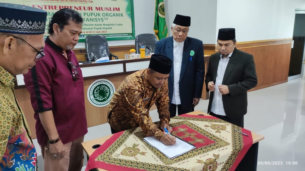 Sebagai bagian dari acara ini, dilakukan penandatanganan Memorandum of Understanding (MoU) antara Koperasi Syariah Amanah Ulama MUI Sumut dengan pemilik teknologi Yanisys™, Dr. ir. Mohammad Yani. MoU tersebut bertujuan untuk memperkuat kerja sama dalam pengembangan dan pemanfaatan pupuk organik berbasis bioteknologi Yanisys™ di Sumatera Utara.