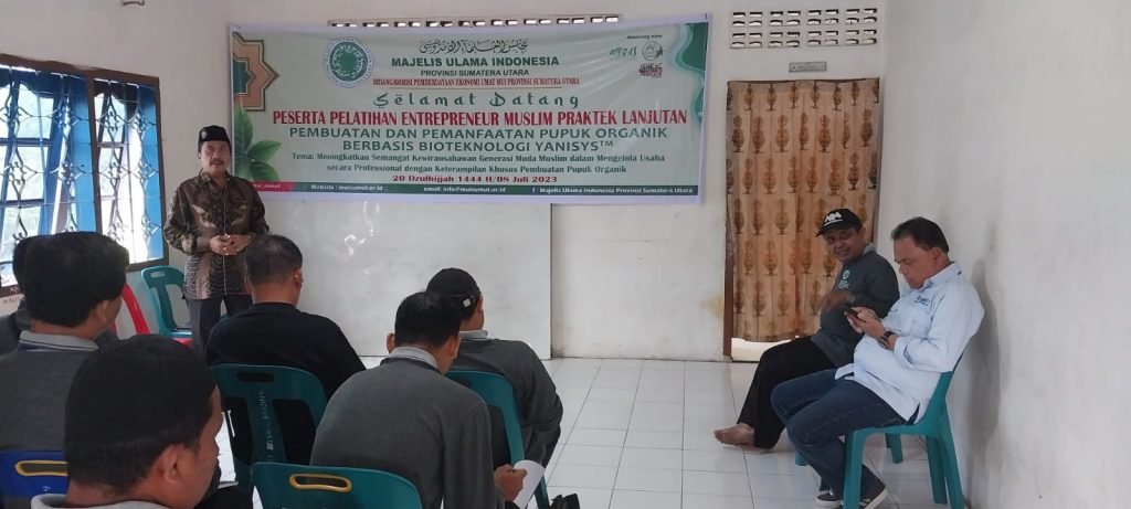 muisumut.or.id-Binjai, Majelis Ulama Indonesia (MUI) Provinsi Sumatera Utara melalui Bidang/Komisi Pemberdayaan Ekonomi Umat (KPEU) menyelenggarakan acara pelatihan entrepreneur Muslim dengan fokus pada praktek lanjutan pembuatan dan pemanfaatan pupuk organik berbasis bioteknologi Yanisys™.