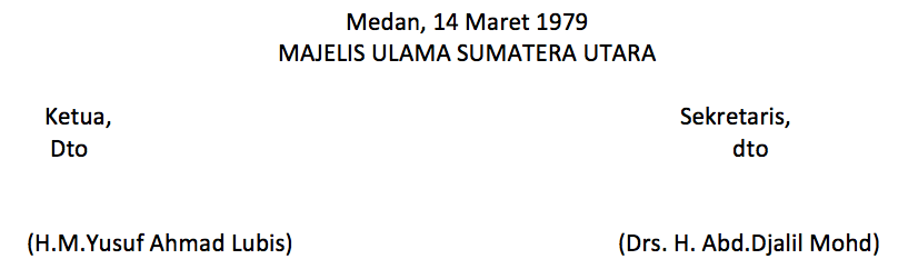- Pandangan dan pendapat anggota sidang pleno Majelis Ulama Sumatera Utara tanggal 7 Maret 1979 dan tanggal 14 Maret 1979