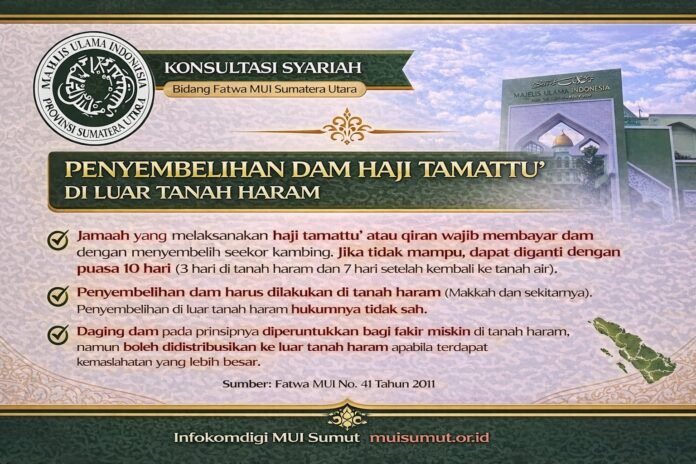 Di tengah masyarakat muncul pertanyaan mengenai pelaksanaan dam haji tamattu’, khususnya terkait kemungkinan penyembelihan hewan dam dilakukan di luar tanah haram, seperti di Indonesia, dengan pertimbangan agar dagingnya dapat lebih bermanfaat bagi fakir miskin di tanah air. Persoalan ini telah dibahas dan dijelaskan oleh Majelis Ulama Indonesia melalui Fatwa MUI Nomor 41 Tahun 2011 tentang Penyembelihan Hewan Dam atas Haji Tamattu’ di Luar Tanah Haram.