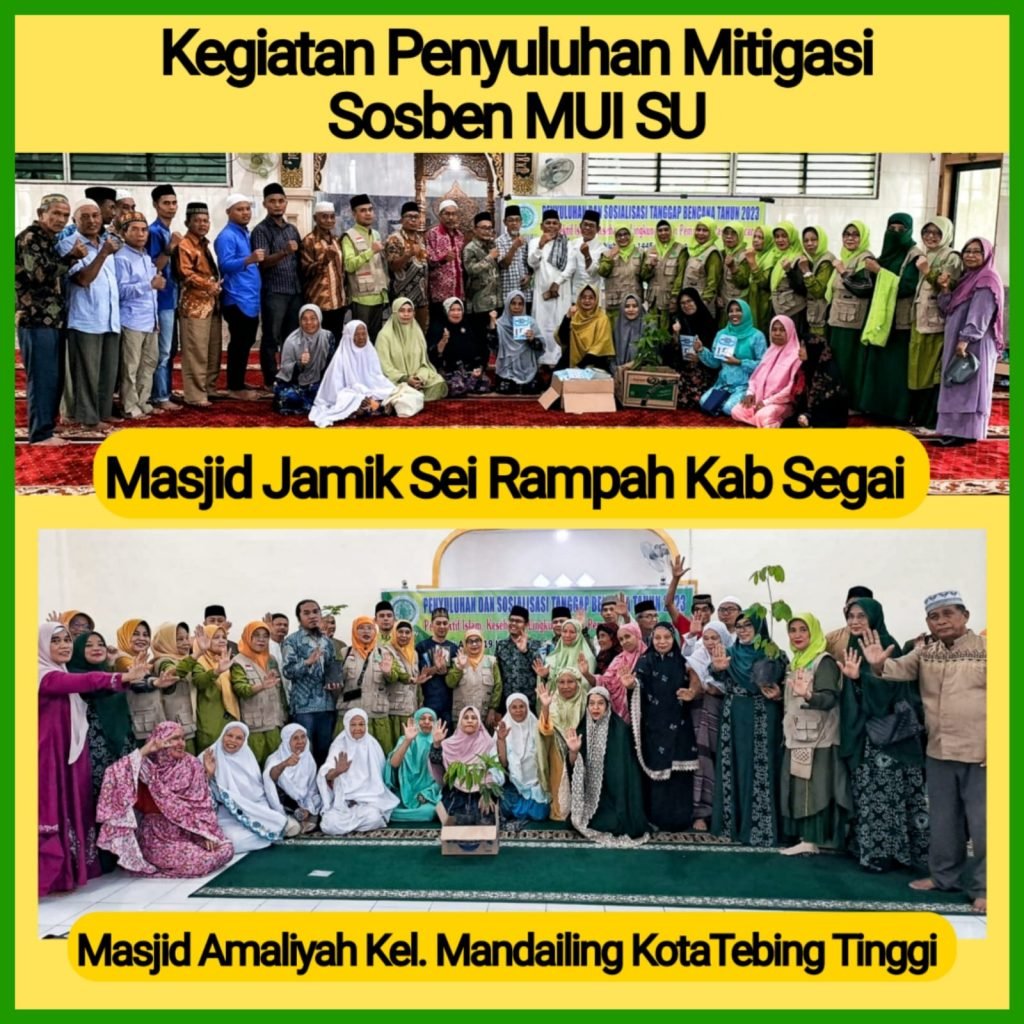 muisumut.or.id, BidKom Sosben MUI SU gelar kegiatan Penyuluhan dan Sosialisasi Tanggap Bencana Tahun 2023 Perspektif Islam, Kesehatan, Lingkungan pada dua daerah rawan banjir di Kabupaten Serdang Bedagai dan Kota Tebing Tinggi .Kegiatan dilaksanakan pada Hari Ahad, 19 Muharram 1445 H/6 Agustus 2023.