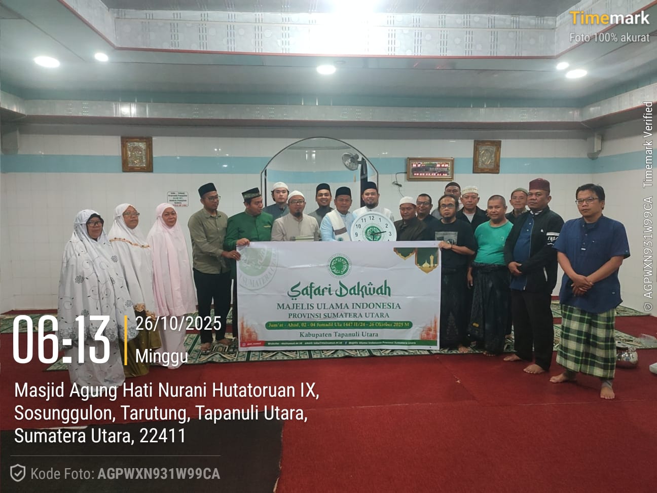 muisumut.or.id, Tapanuli Utara — Ahad Shubuh, 26 Oktober 2025, Tim Safari Dakwah Majelis Ulama Indonesia (MUI) Sumatera Utara wilayah Tapanuli Utara melaksanakan silaturrahim dengan masyarakat dan jamaah di Mesjid Agung Hati Nurani, Kecamatan Siatas Barita, Kabupaten Tapanuli Utara.