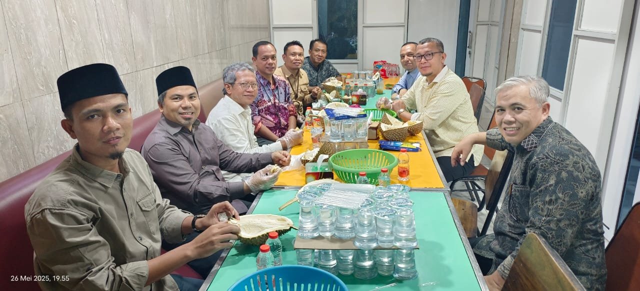 muisumut.or.id., Medan, 26 Mei 2025, Dalam suasana penuh kehangatan, Sekretariat Dewan Syariah Nasional Majelis Ulama Indonesia (DSN MUI) Perwakilan Sumatera Utara menggelar silaturahim dengan Badan Pengurus Harian (BPH) DSN MUI Pusat pada Senin, 26 Mei 2025 di Medan. Silaturahim berlangsung santai dan akrab, dilaksanakan sambil menikmati buah durian di Durian Ucok yang legendaris di Kota Medan.