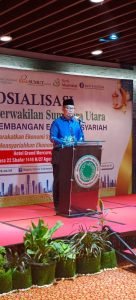 Dr. Ardiansyah, Lc., M.A., selaku Ketua Panitia yang juga Kordinator DSN MUI Perwakilan Sumut, dalam menyampiakan pentingnya sosialisasi ini sebagai langkah edukatif untuk meningkatkan pemahaman masyarakat tentang penerapan prinsip-prinsip syariah dalam kehidupan, khususnya dalam bidang ekonomi. Ia juga menyampaikan terima kasih kepada seluruh pihak yang telah berpartisipasi, termasuk Ayahanda Prof. Yasir Nasution dan Ketua BPH DSN MUI Pusat, Kanny Hidaya, yang memiliki peran signifikan dalam pengembangan ekonomi syariah di Indonesia.