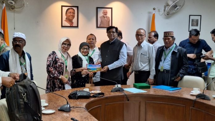 “Outstanding Ulama promoting the environment”, kata Prof Upendher Rao ketika Nani Ayum Panggabean Sekretaris Bidang Sosben MUI SU menyerahkan Souvenir Siker Promosi Lingkungan Hidup Sosben MUI SU dalam kunjungan FKUB Provsu ke India pada tanggal 3 -7 Oktober 2023 yang dipimpin lansung oleh Ketua FKUB SU Dr. H. Abdurrahim, M.Hum.