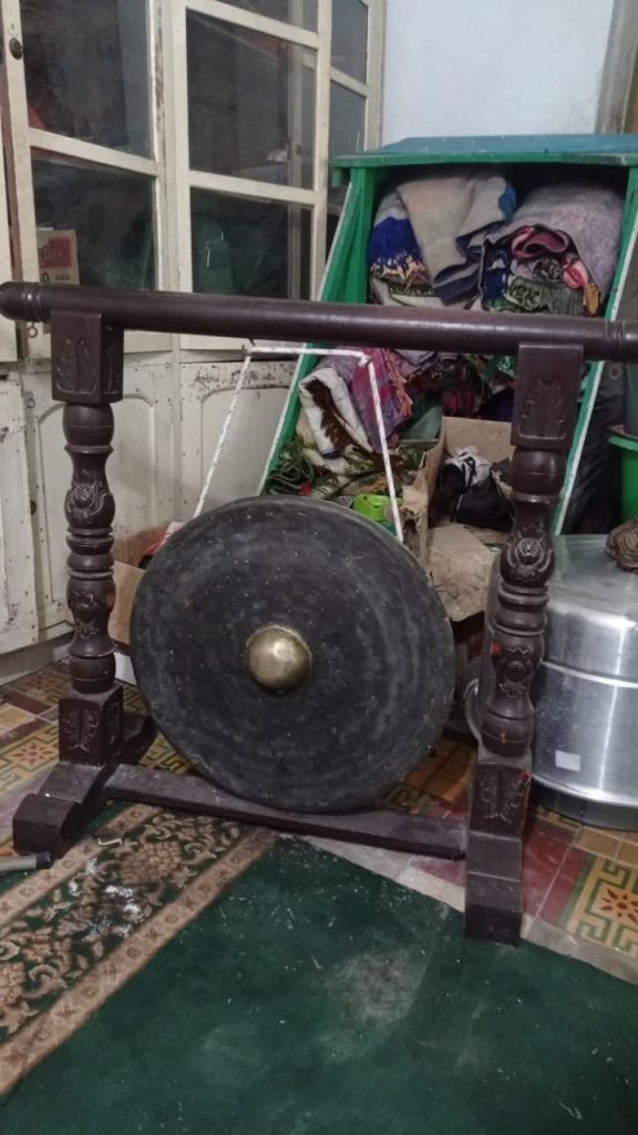 “Gong yang pertama kali lebih besar dari gong ini, itu sudah hilang tidak tahu kemana, jadi dulu kami memukul gong sebelum dikumandangkannya azan”.
