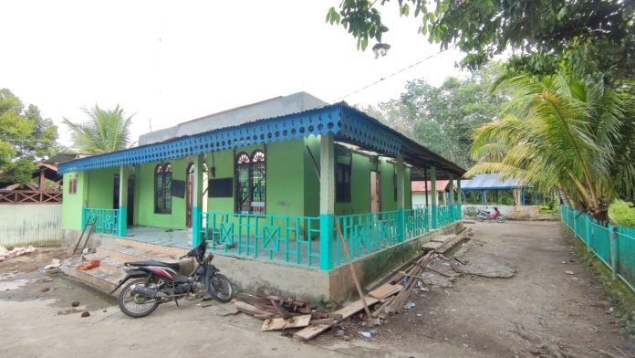 “Atap mesjid yang di teras merupakan bukti sejarah, karena leluhur kami dulu belajar agama Islam sampai ke Malaysia sana. Masjid ini sedang di Renovasi, namun untuk pondasi tiang tengahnya tetap kami buat tiang yang pertama kali saat Masjid ini berdiri”, ungkapnya.